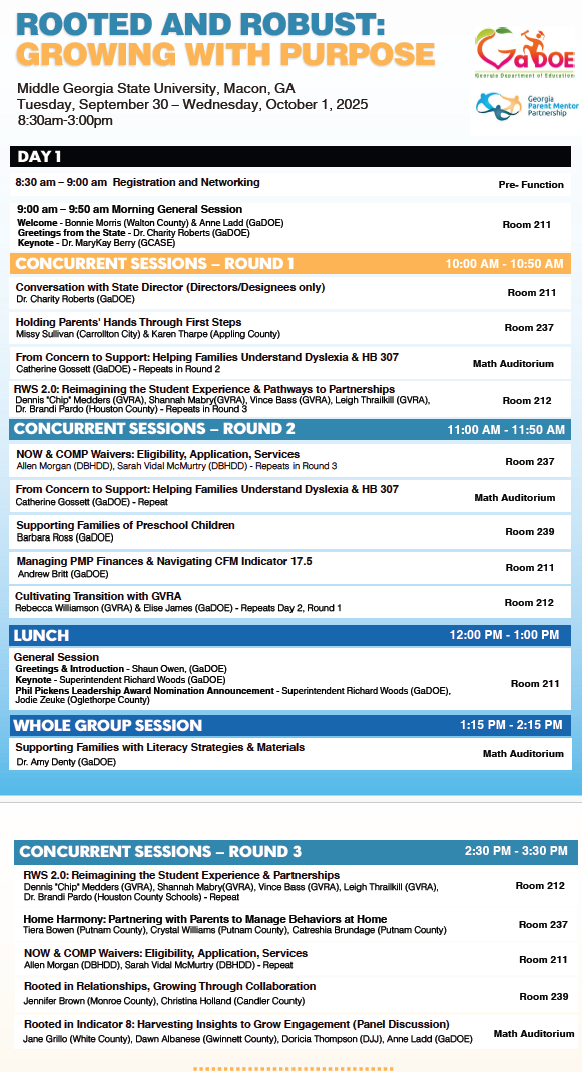 This meeting is free and in person for participating districts of the Georgia Parent Mentor Partnership